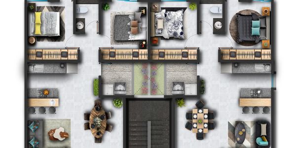 Al centro del proyecto se encuentra el parque central que ofrece distintos espacios de esparcimiento a los residentes a solo unos pasos de distancia de cualquier departamento.